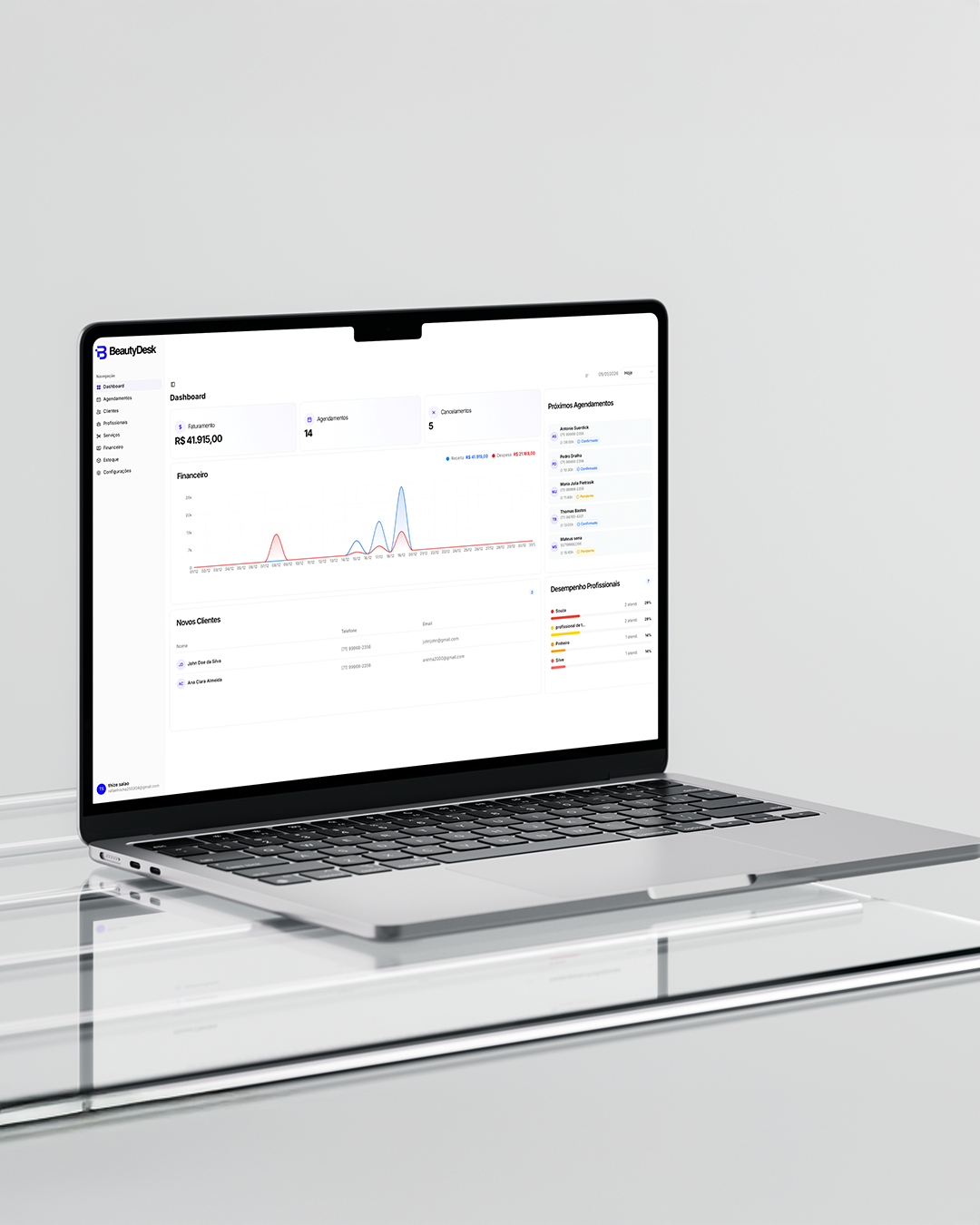 CRM desenvolvido especialmente para salões de beleza, nascido da visão de um profissional com ampla experiência em marketing para o setor, que identificou uma lacuna crítica no mercado: não bastava atrair clientes, era necessário estruturar a operação para sustentar o crescimento. A BeautyDesk surge para atuar diretamente na organização, controle e produtividade dos salões, simplificando financeiro, agendamentos, gestão de clientes, estoque e mais. A identidade foi criada para representar organização, controle e evolução — com formas contínuas e suaves que simbolizam o fluxo dos processos e uma operação clara, funcional e previsível. A BeautyDesk é mais do que um CRM: representa uma nova mentalidade de gestão, onde controle, simplicidade e crescimento caminham juntos.